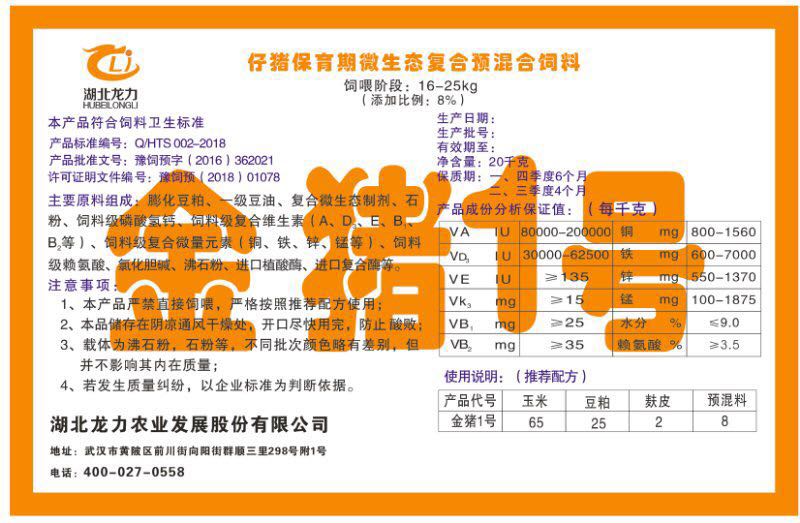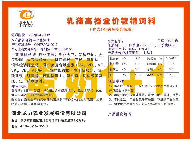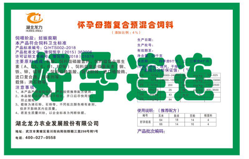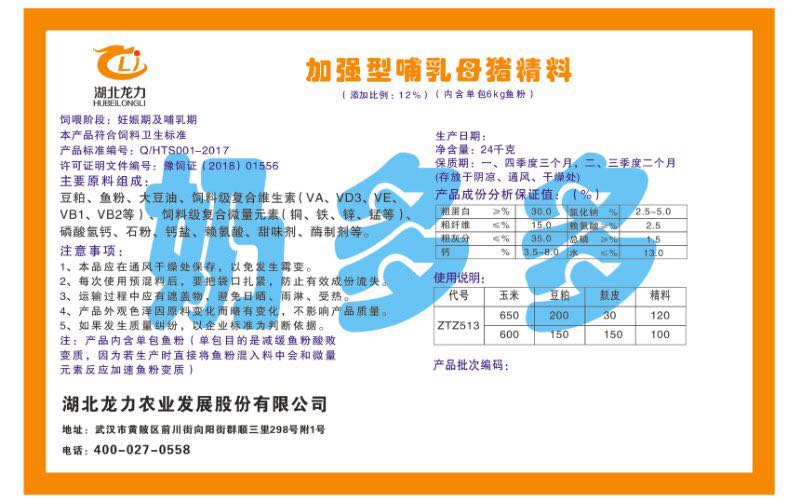 湖北龍力農業(yè)發(fā)展股份有限公司坐落于武漢市黃陂區(qū)前川街向陽街群順三里298號附1號。公司成立于2014年6月,公司自成立以來把“創(chuàng)全球最大養(yǎng)豬綜合服務”為企業(yè)愿景。致力于打造教保料品牌”作為公司發(fā)展的明確目標。公司一直致力于豬營養(yǎng)的研究和開發(fā),積極與國內外高校和科研機構合作,推廣養(yǎng)豬技術、動物營養(yǎng)新概念,向世界農牧企業(yè)學習與合作。公司采用國內先進的生產工藝,選擇高精度電子配料秤,高均勻度、無殘留混合機等先進設備....